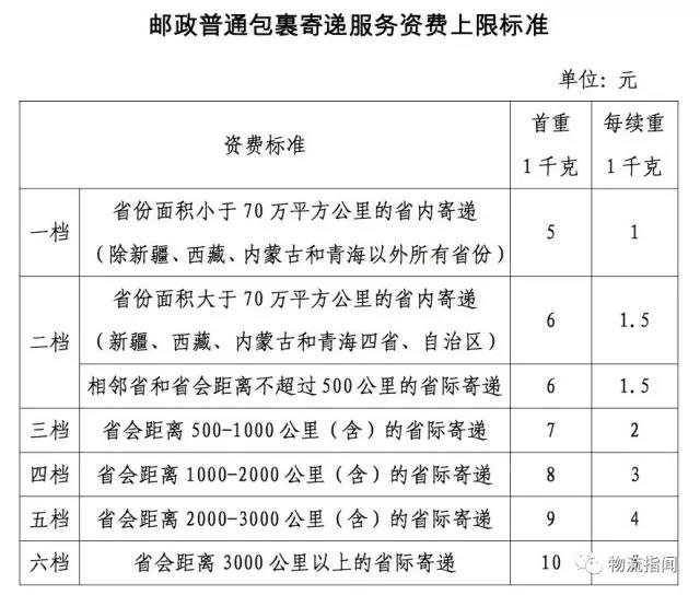 郵政普通包裹寄遞服務(wù)資費(fèi)按照省級(jí)行政區(qū)劃、省會(huì)城市之間郵運(yùn)距離,設(shè)置31個(gè)計(jì)費(fèi)區(qū)、6檔資費(fèi),區(qū)分首重、續(xù)重計(jì)費(fèi),首重、續(xù)重計(jì)費(fèi)單位重量均為1千克,不再另收掛號(hào)費(fèi)。