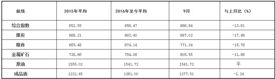 2016年9月中國沿海(散貨)運價指數(shù)表