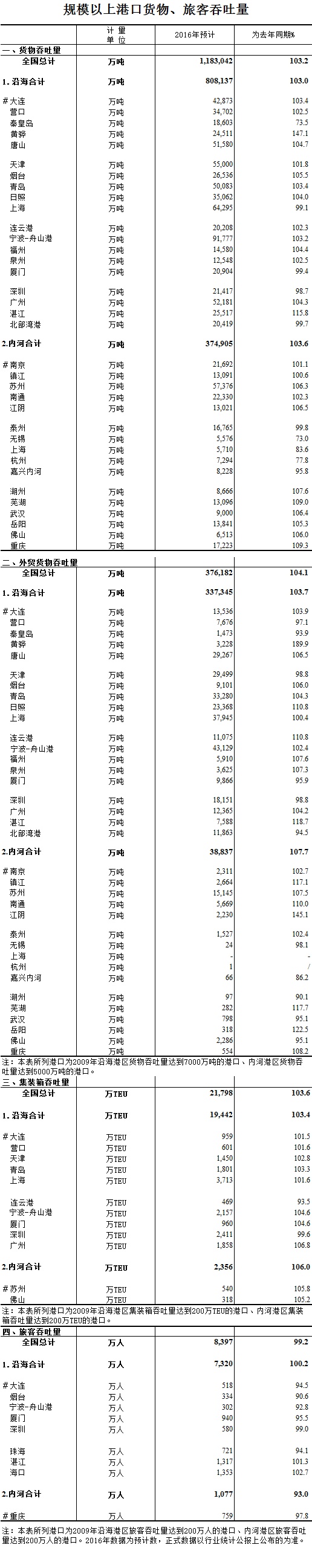 2016年規(guī)模以上港口貨物、旅客吞吐量快報(bào)數(shù)據(jù)