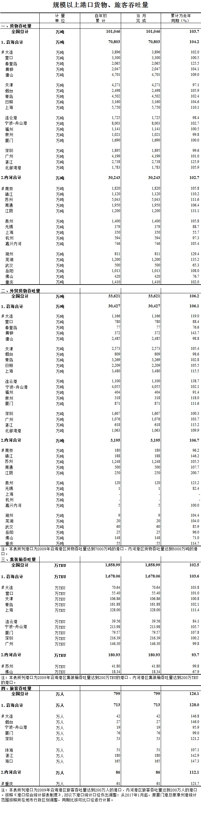2017年1月規(guī)模以上港口貨物、旅客吞吐量
