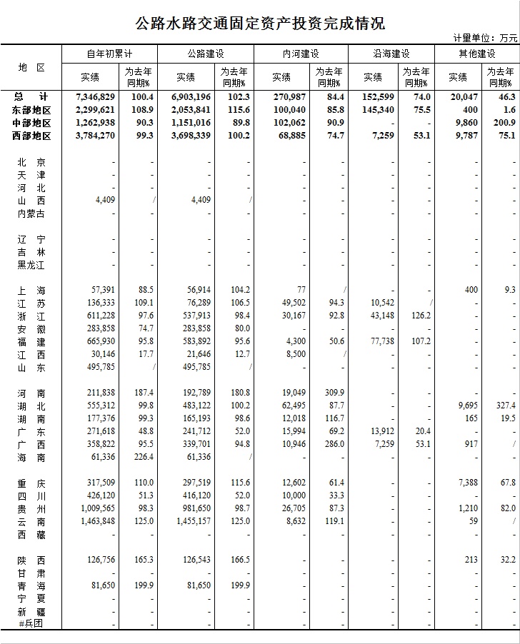 2017年1月公路水路交通固定資產(chǎn)投資完成情況