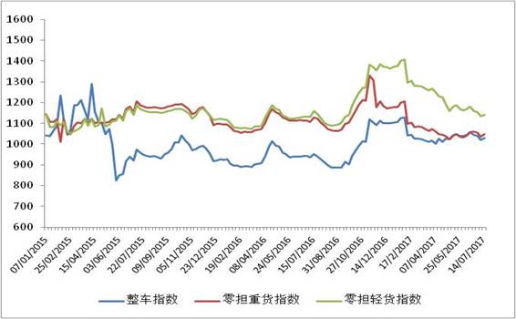 本周(2017年7月10日~7月14日),由中國物流與采購聯(lián)合會和林安物流集團(tuán)聯(lián)合調(diào)查的中國公路物流運(yùn)價(jià)指數(shù)1062.0點(diǎn),在連續(xù)三周回落后回升,環(huán)比回升1.6%。